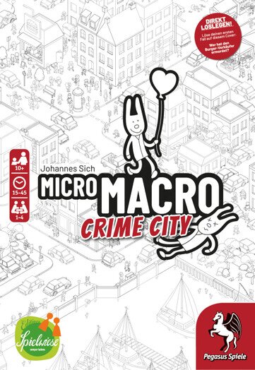 MicroMacro Crime City ist ein kooperatives Detektivspiel. Gemeinsam lösen die Spieler 16 knifflige Krimifälle, indem sie Motive ermitteln, Beweise finden und die Täter überführen. Ein aufmerksames Auge ist ebenso gefragt wie kreative Kombinationsgabe, um auf dem 75 x 110 cm großen Spielplan alles zu enträtseln. Als kleine Hilfe ist dazu im Spiel eine Lupe enthalten. Ein Spieler übernimmt die Rolle des Kommissars und ist dafür verantwortlich, die Fallkarten vorzulesen (rätselt aber natürlich auch mit). Die Spieler wählen gemeinsam aus, welchen Fall sie spielen und der Kommissar liest die entsprechende Startkarte sowie die erste Aufgabe vor. Gemeinsam erkunden die Spieler den Stadtplan von Crime City , um nach und nach alle Fragen auf den Fallkarten zu beantworten. Das Spiel endet, sobald die letzte Fallkarte richtig beantwortet wurde.
